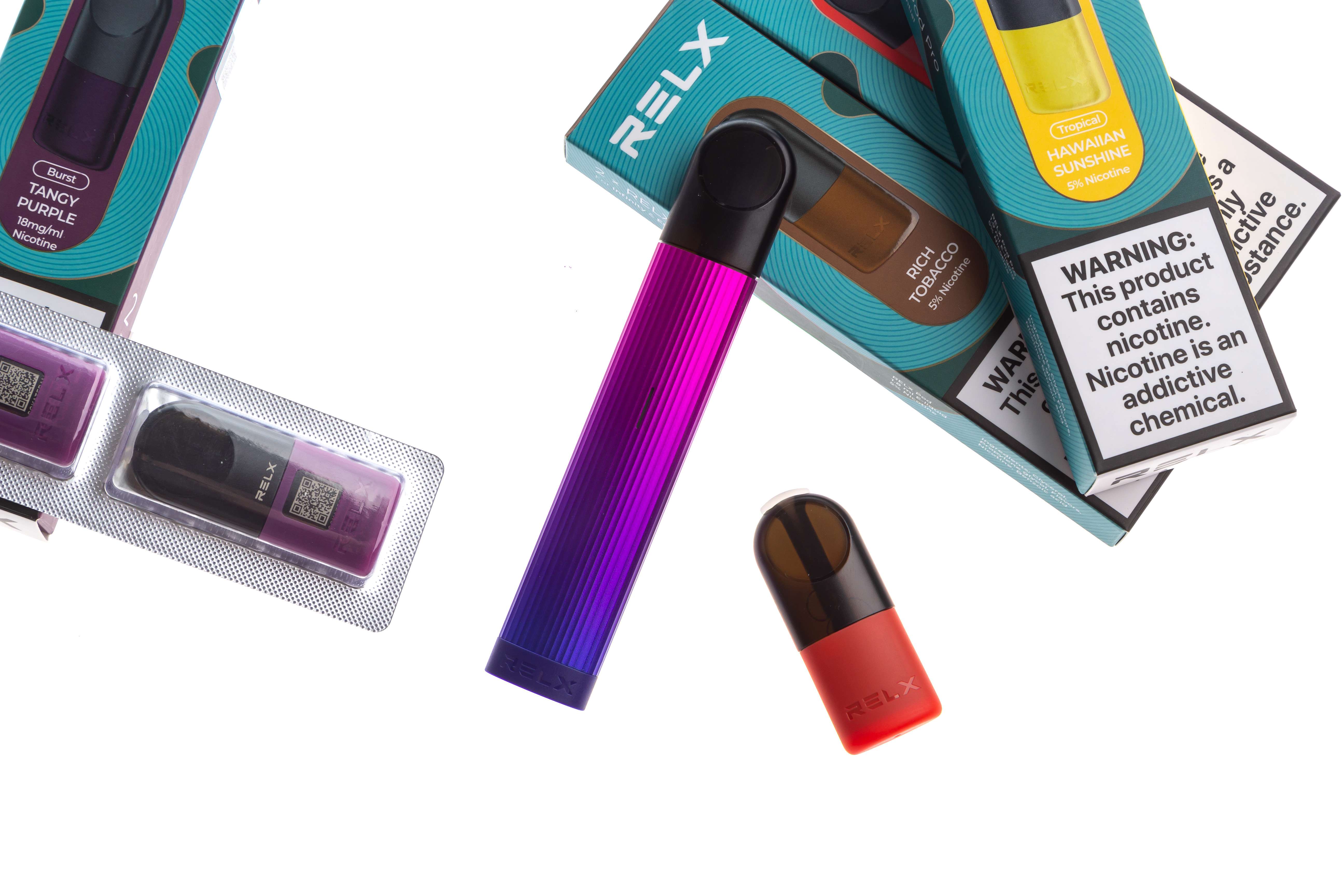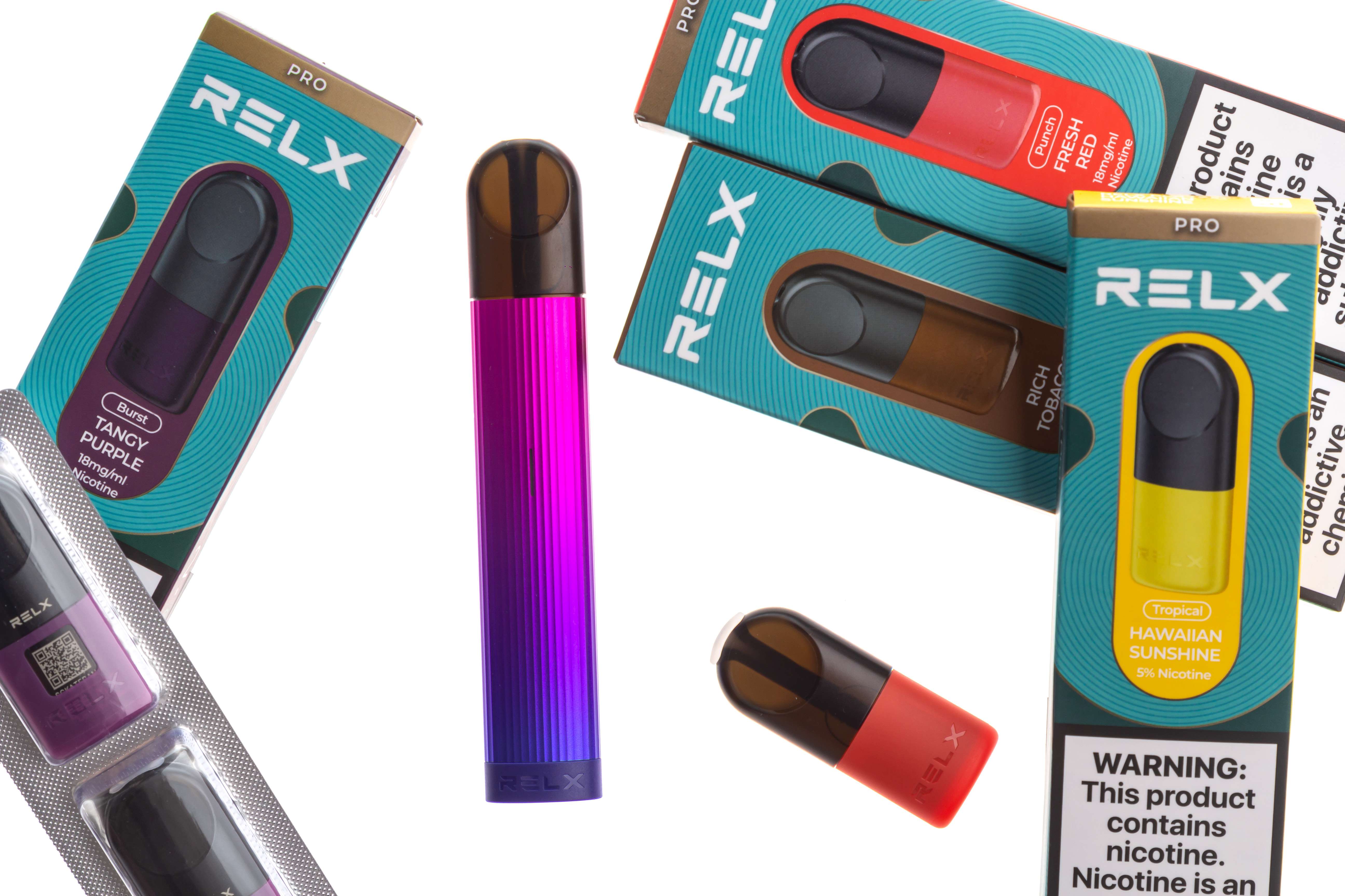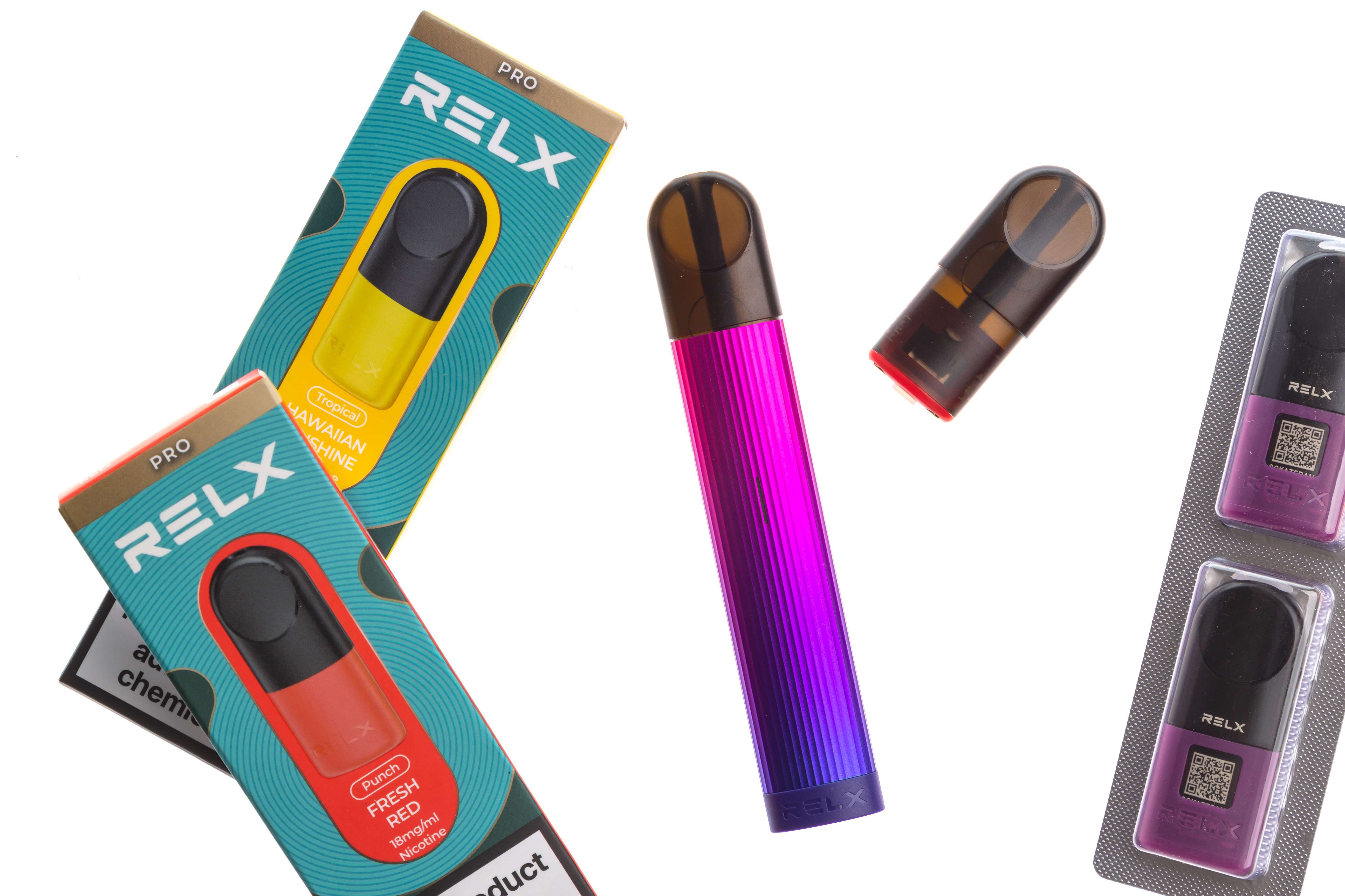 Фотосъемка электронных сигарет RELX для интерент магазина на белом фоне.